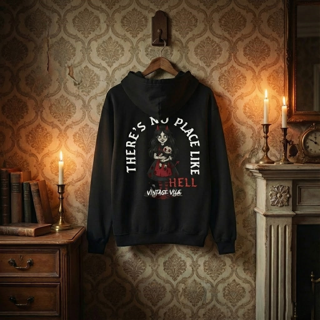 Theres No Place Like Hell Graphic Hoodie — Edgy Horror Streetwear