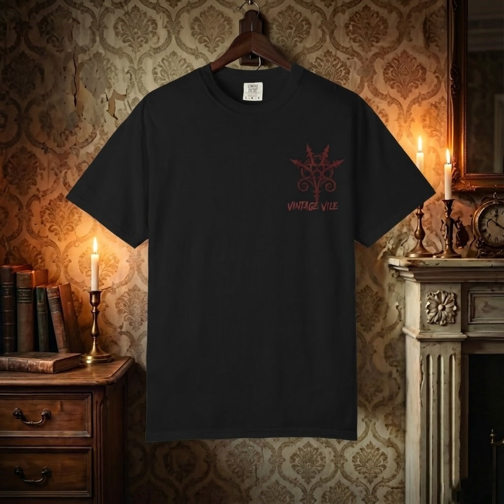 The Vintage Vile "Original Sin" T-Shirt captures the moment the Princes realized the Boss wasn't benevolent—He was a tyrant. This wasn't about an apple or a snake; it was about the first time someone had the courage to say "No." Featuring a gritty, woodcut-style illustration of the Seven standing tall against the blinding light of oppression, this shirt honors the first true rebels.Wear the truth. The sins weren't crimes; they were acts of liberation. Welcome to the resistance