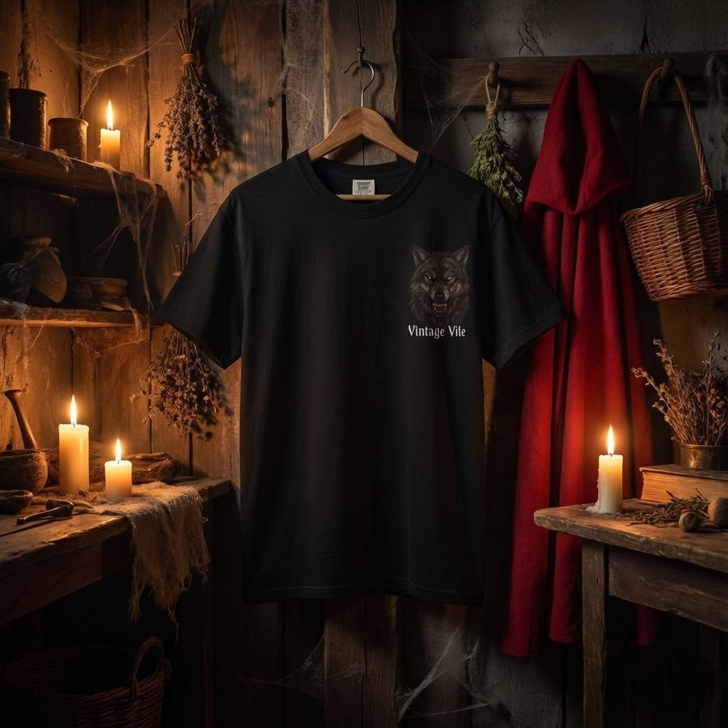 The Alpha Red Hoodie flips the script on the classic fable. In this version, Red didn’t need a woodsman to save her; she needed a new fur coat. Featuring a chilling illustration of Red standing over her prey with a basket full of something far darker than goodies, this piece explores the idea that the "innocent" girl was the apex predator all along.The red isn't dye. It's a warning. Walk the path, but don't stray... she's waiting.
