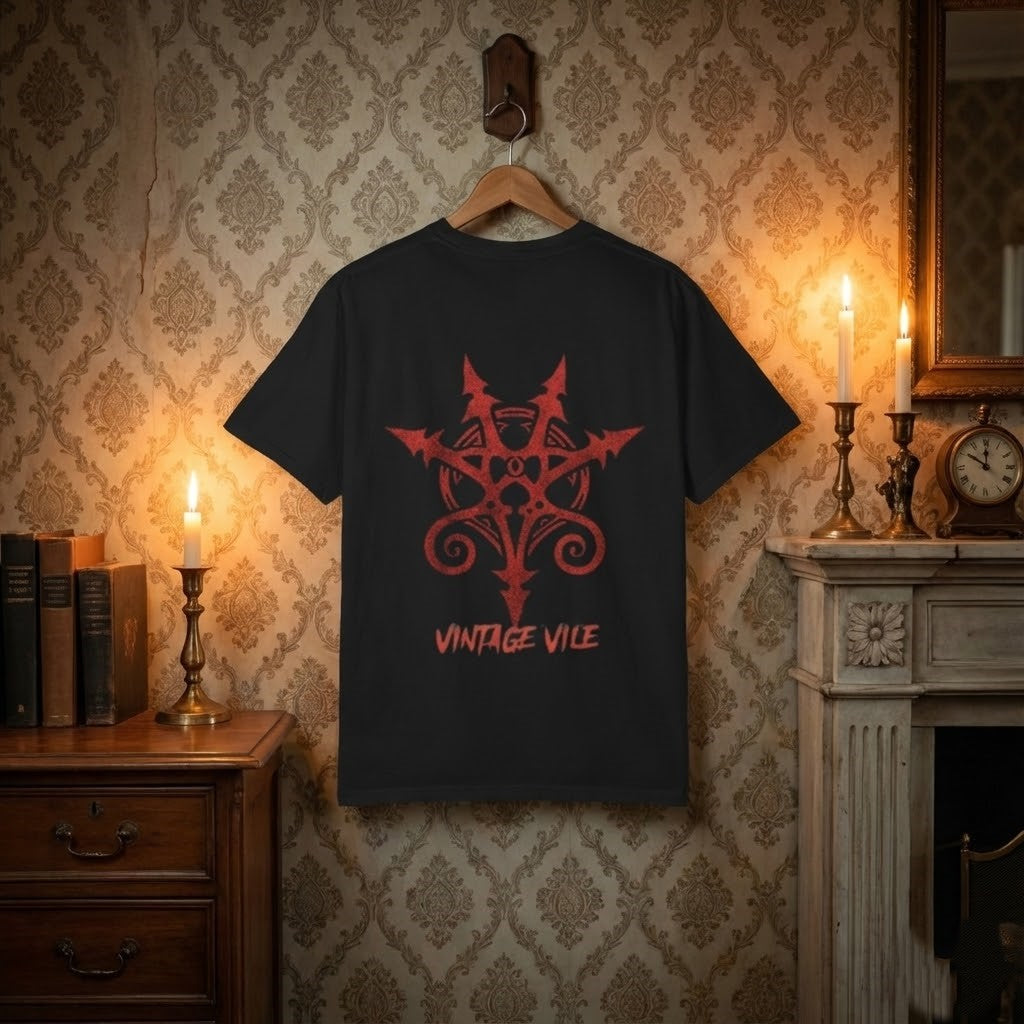 This vintage-inspired tee channels gritty, rebellious energy with a worn-in print that reads like a relic from a forgotten punk show. The faded “vile the original sin” graphic sits low and lived-in, breaking up the silence of a quiet closet with attitude. It slips on easily and becomes part of your daily rotation—pair it with ripped denim, a flannel tied at the waist, or under a leather jacket for nights out. The soft, garment-dyed cotton and relaxed fit feel like a favorite from day one, and the subtle aging in the color makes each shirt feel uniquely yours. Wear it when you want your clothes to speak with personality—roommates, late-night gigs, record-store hunting, or the kind of weekend that slows down just enough to let you breathe and remember why music mattered in the first place.